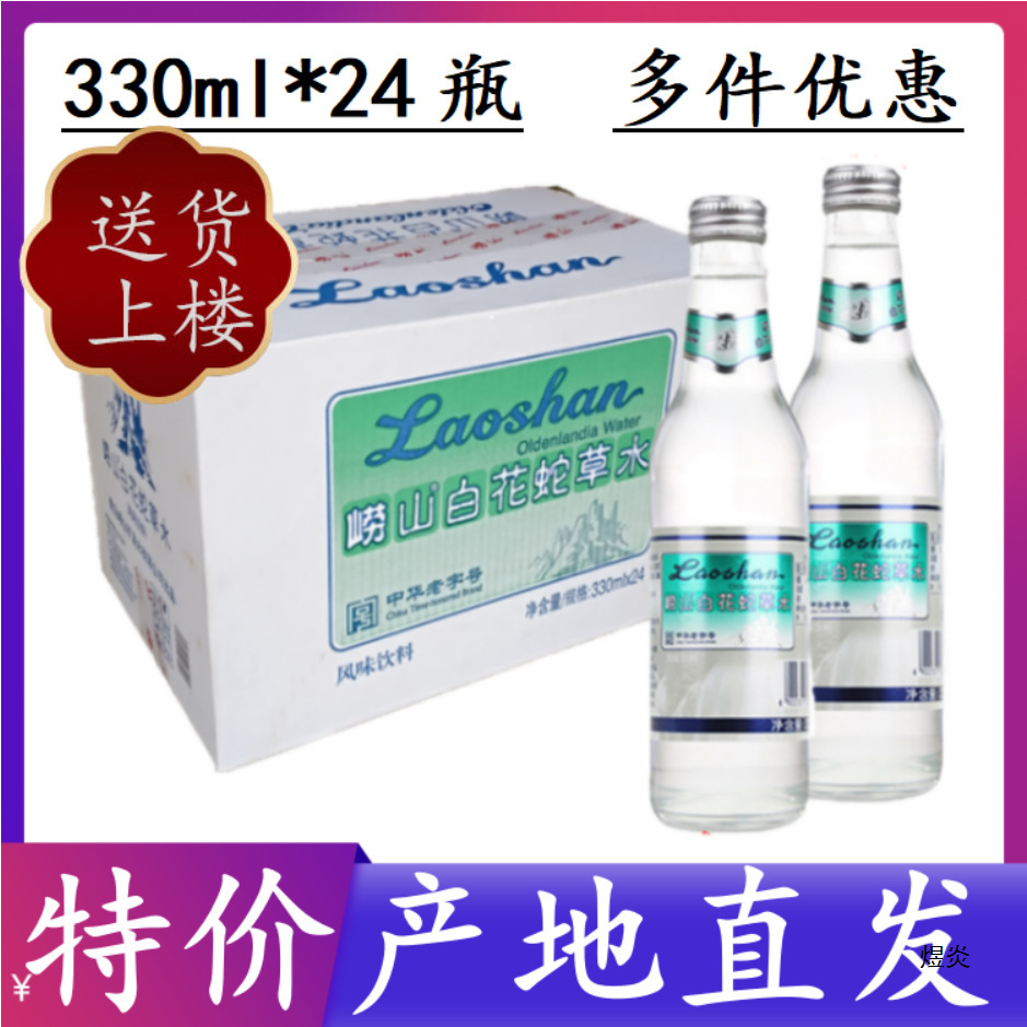 【青島発送】老山白花蛇草水 330ml*24本/箱 百花蛇草水 ハーブ炭酸水