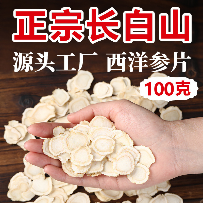 長白山高麗人参スライス、卸売アメリカ人参、アメリカ人参スライス、柔らかい枝、古い高麗人参、大判、特製水に浸して飲む