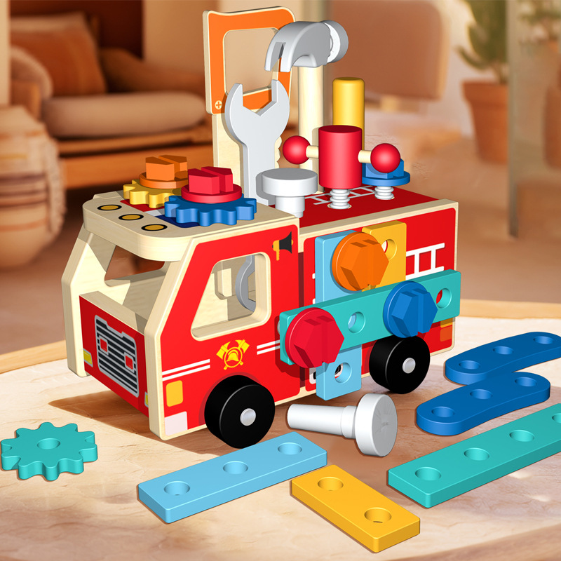 国境を越えた木製消防車ネジとナット分解組み立てツールカート子供の早期教育啓発知育玩具