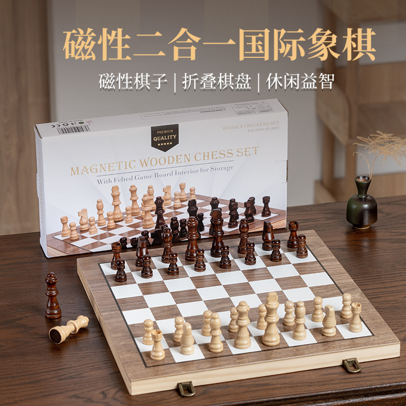 クロスボーダー木製磁気チェスツーインワン折りたたみチェスボックス子供の大人のパズルゲームのおもちゃの卸売