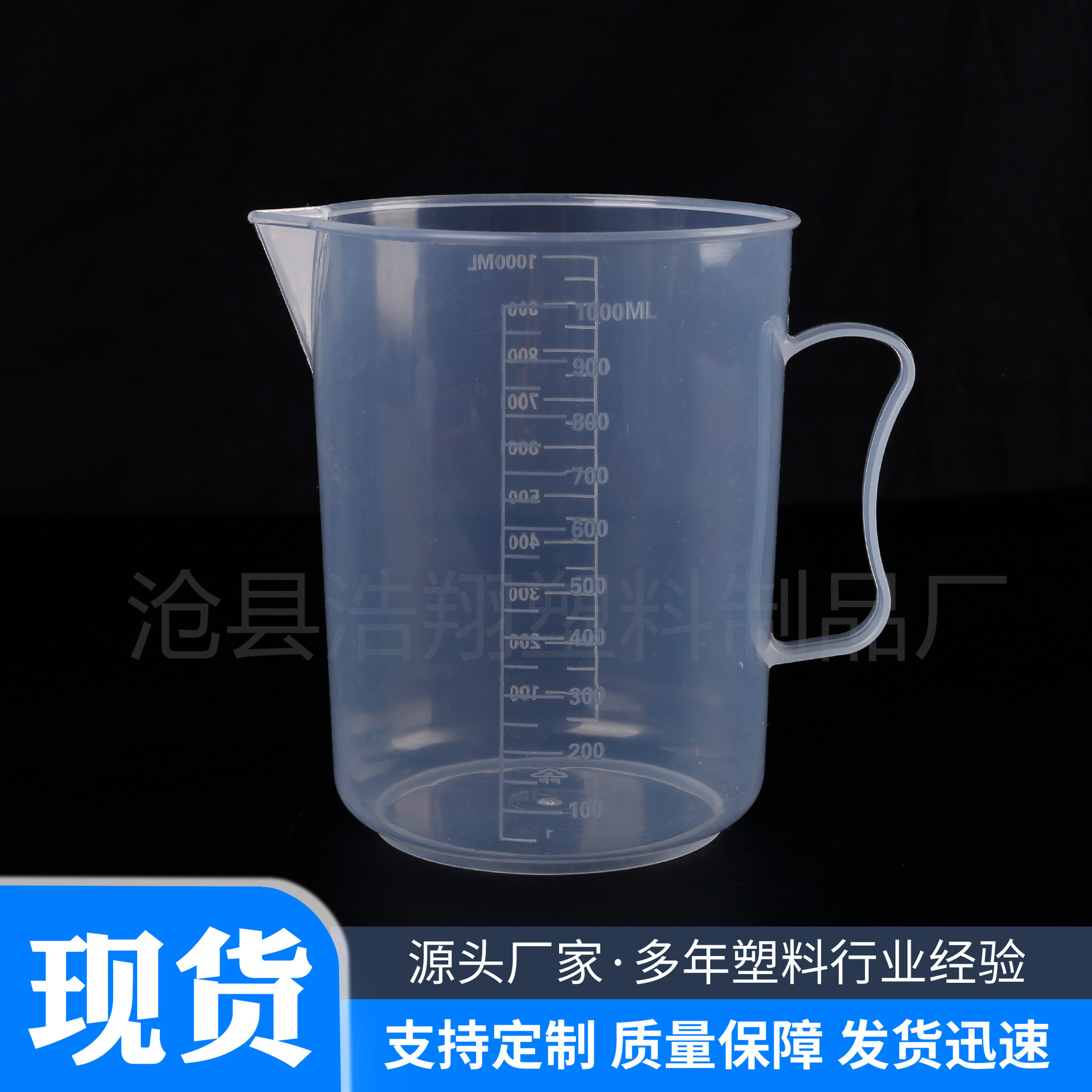 1000mlプラスチック計量カップ、目盛り付きビーカー、ハンドル付き、透明度の高い、工場在庫の食品グレードの飲料