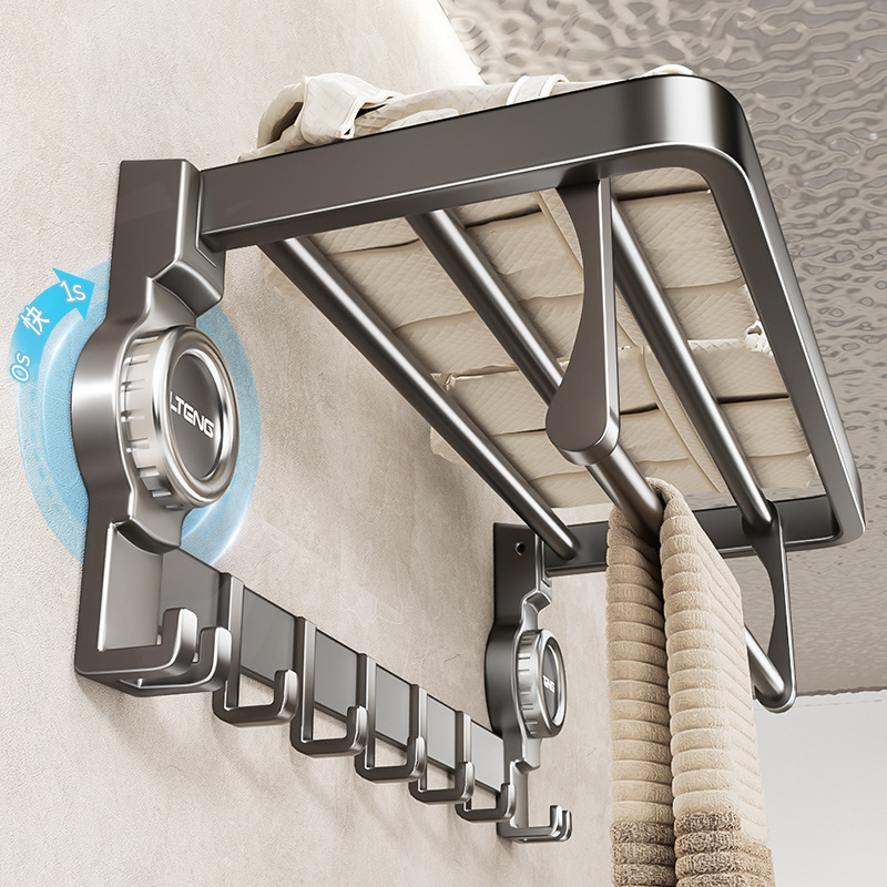 吸盤折りたたみバスタオルラック多機能パンチフリーバスルーム収納ラックバスルーム壁掛けタオル収納