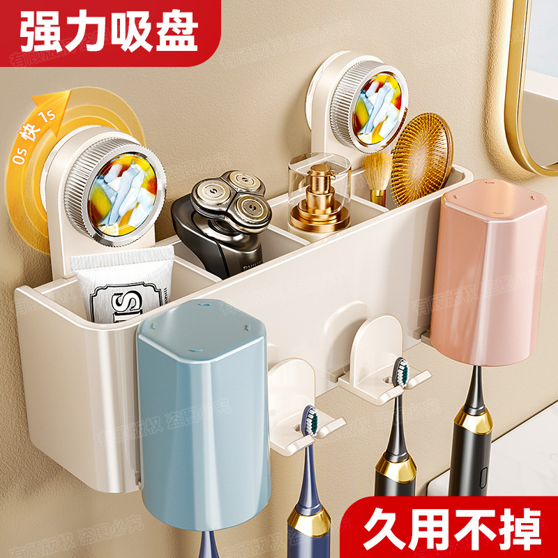吸盤高級石歯ブラシ収納ラック家庭用浴室シンクパンチフリー壁掛けマウスウォッシュカップ収納