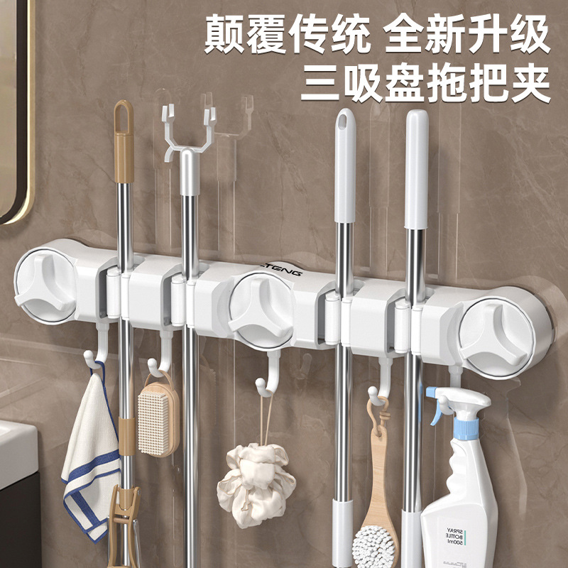 吸盤モップラック浴室パンチフリー壁掛け収納ラック浴室トイレクリーニングツール収納