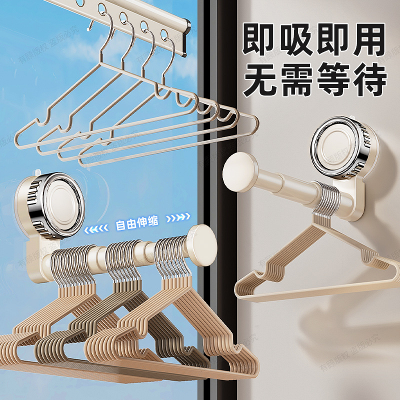 家庭用バルコニー用吸盤式物干しラック、多機能壁掛け、パンチフリー、格納式衣類乾燥ラック