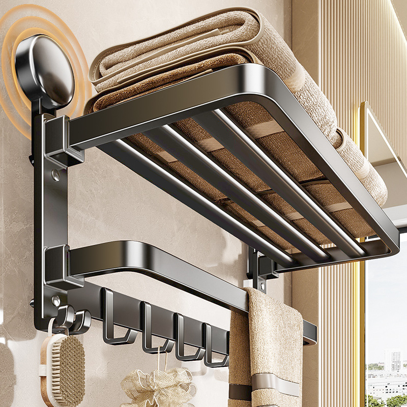 吸盤タオル棚多機能回転折りたたみタオルバー浴室穴なし壁掛けタオル収納棚