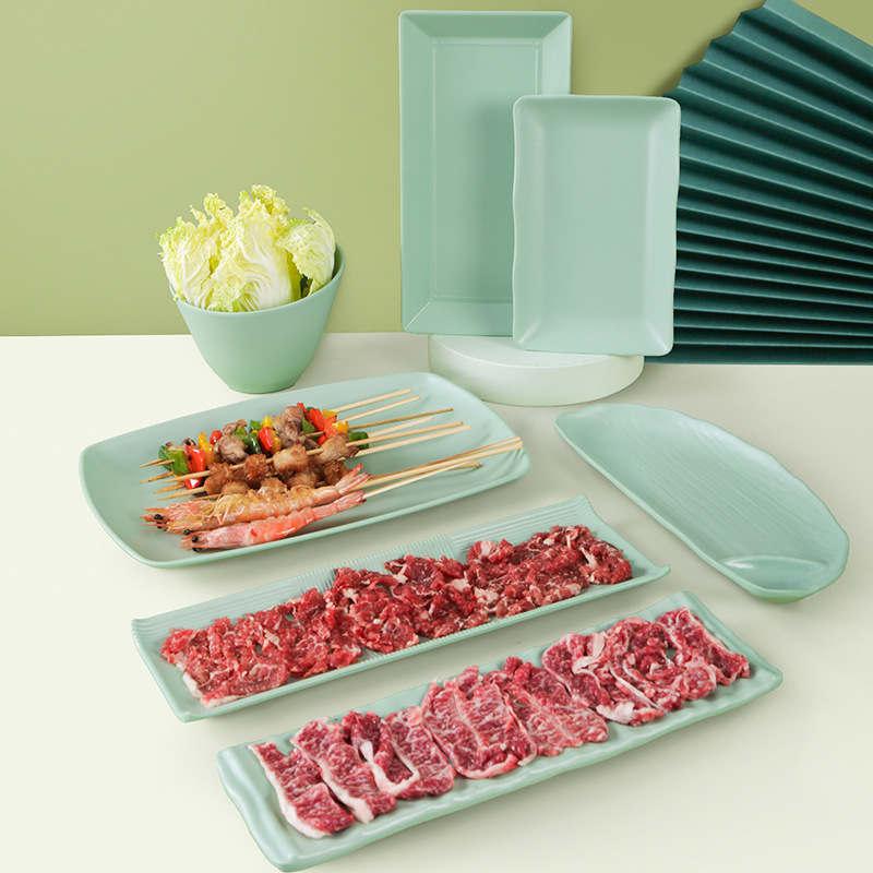 祥源美北欧メラミン食器皿長方形レストラン商用創意プラスチック鍋店料理皿バーベキュー皿