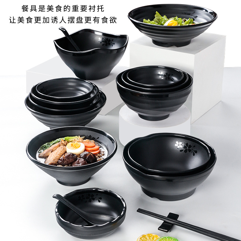 祥源美黒色メラミン麺碗商用模造磁器防打プラスチック麻辣热牛肉麺スープ碗スープ粉碗