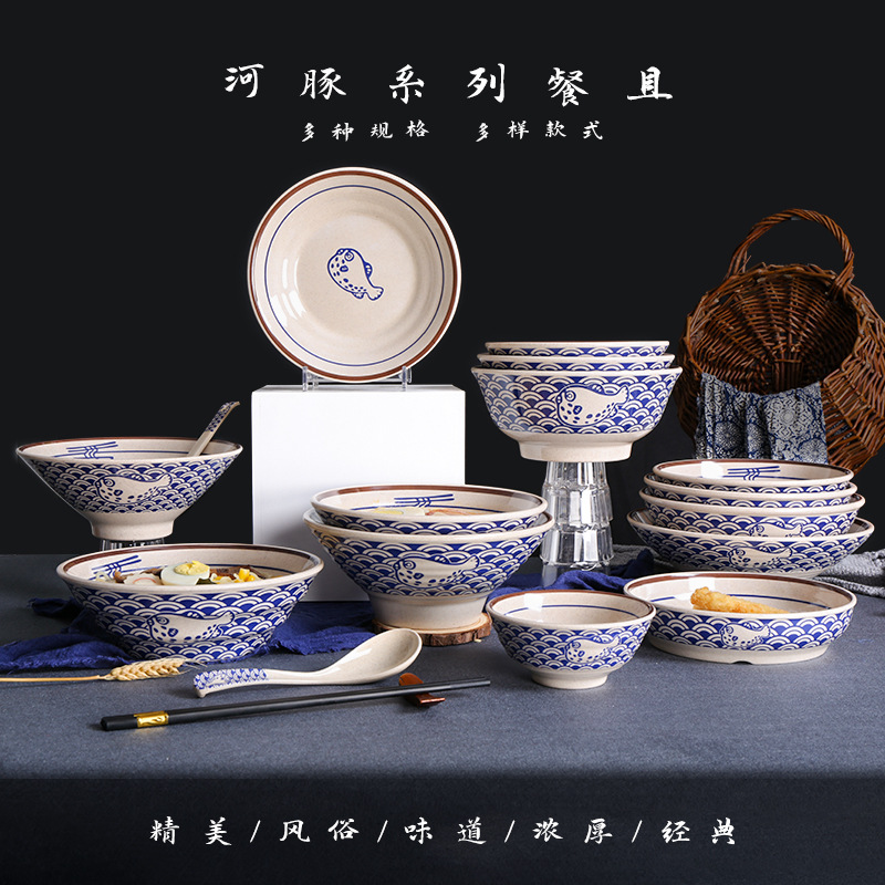 祥源美青花磁器メラミン食器創意ファストフード店味千ラーメン碗は磁器の丼と箸のスプーンのセットに似せています。