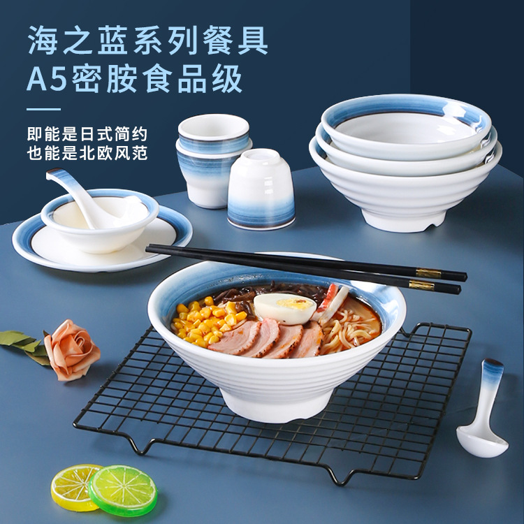 メラミン麺碗商用プラスチック麻辣热大碗麺館専用碗は磁器食器の創意スープ粉米線スープ碗に似せています。