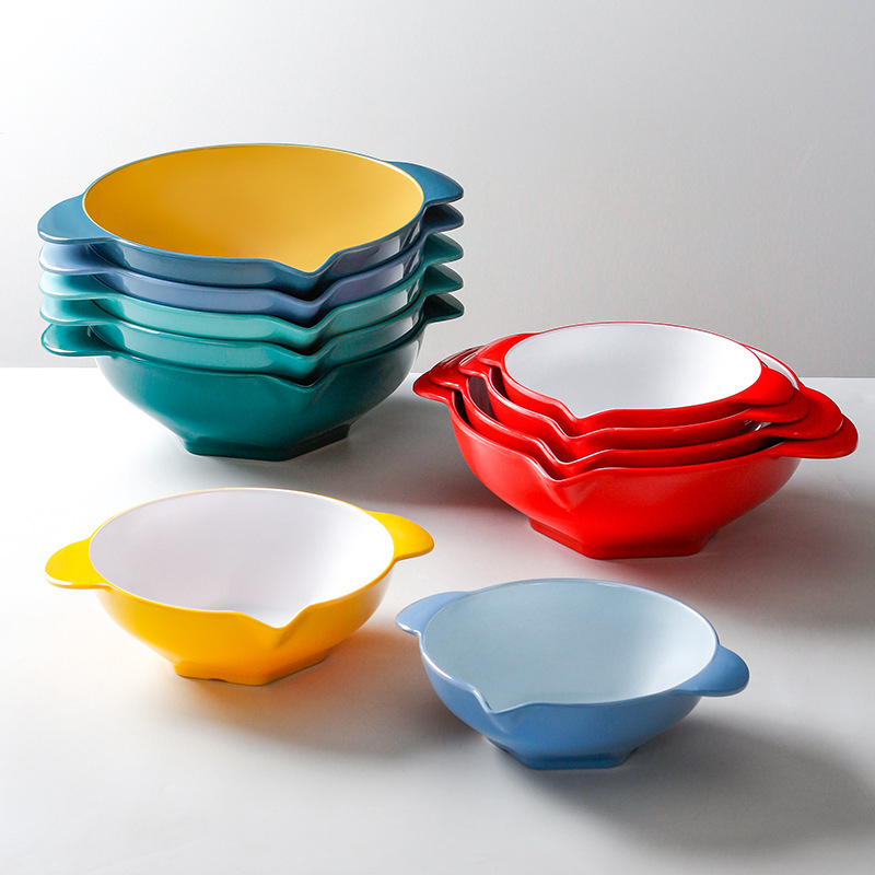 メラミン食器ネット赤両耳どんぶりスープ碗業務用模造磁器どんぶりの尖った口の麻辣热碗の酸っぱい魚の水煮魚
