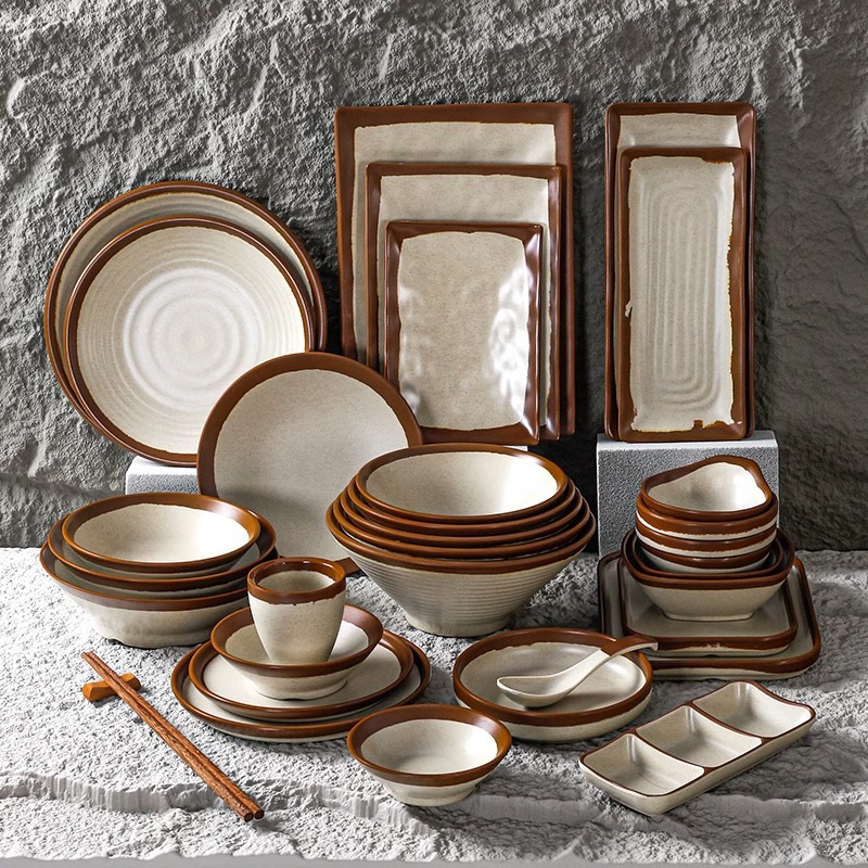新型メラミン創意レトロ食器商用レストランホテル鍋店皿料理皿模造磁器プラスチックボウル