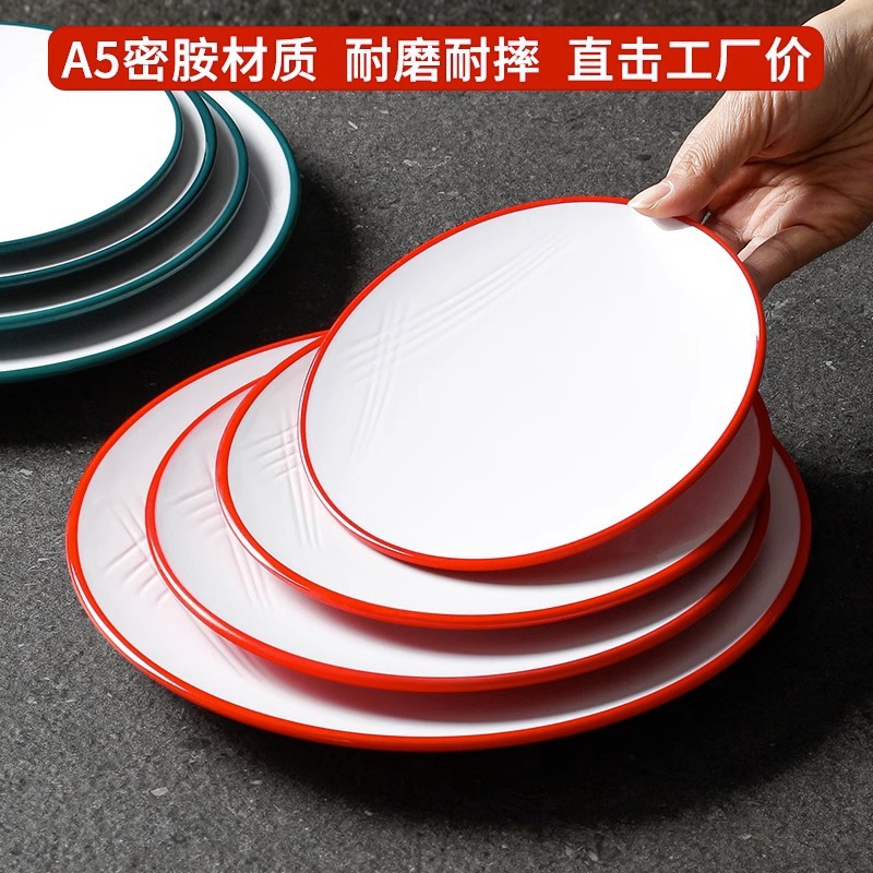 新型メラミン食器皿円形業務用骨皿レストランレストラン鍋店料理皿創意復古料理皿