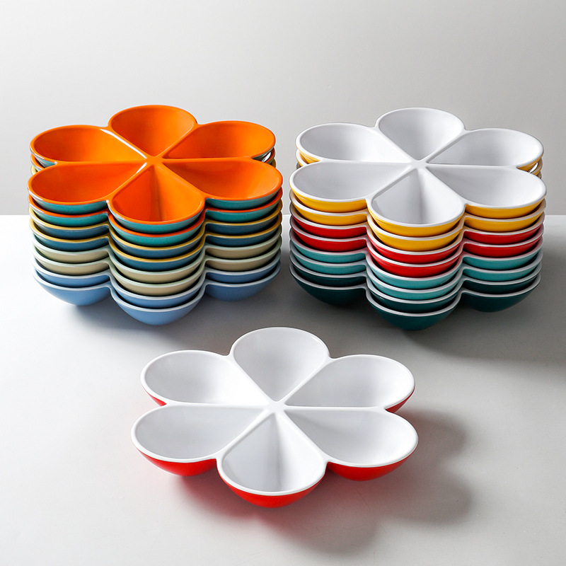 メラミン食器皿レストラン館商用ktv軽食皿模造磁器プラスチッククリエイティブ花形多格ドライフルーツ盛り合わせ
