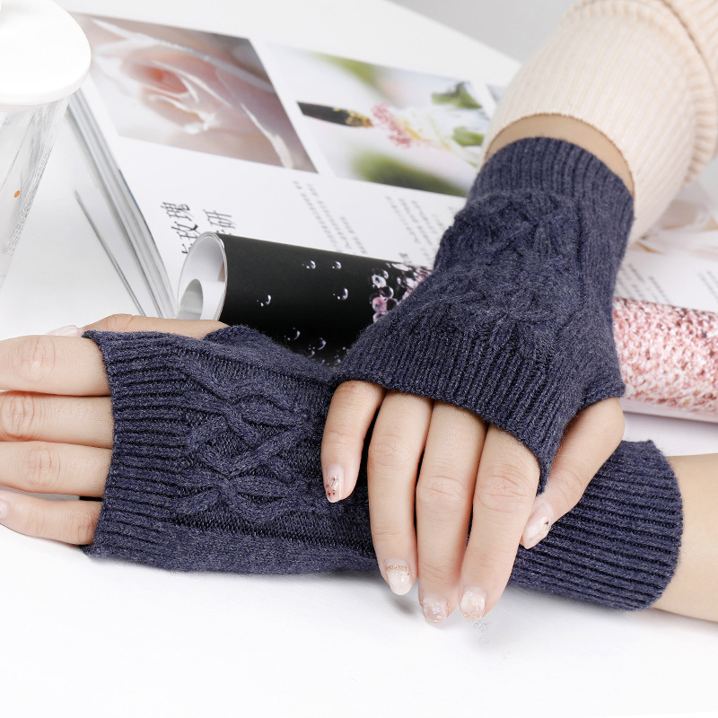 2020新型麻花手袋半指手袋ウール冬保温男女共通厚腕保護腕