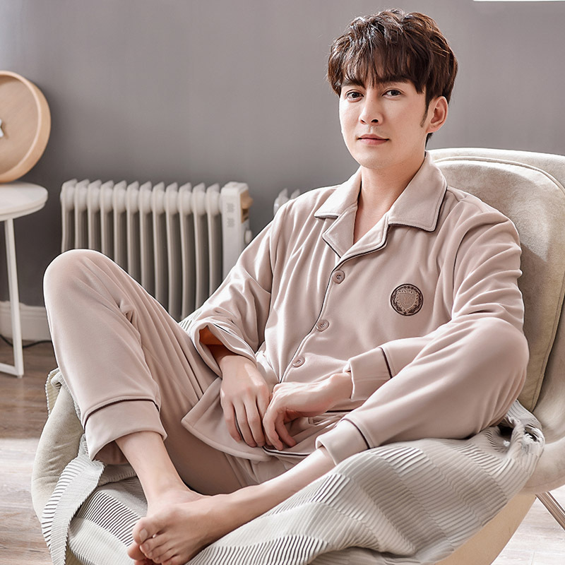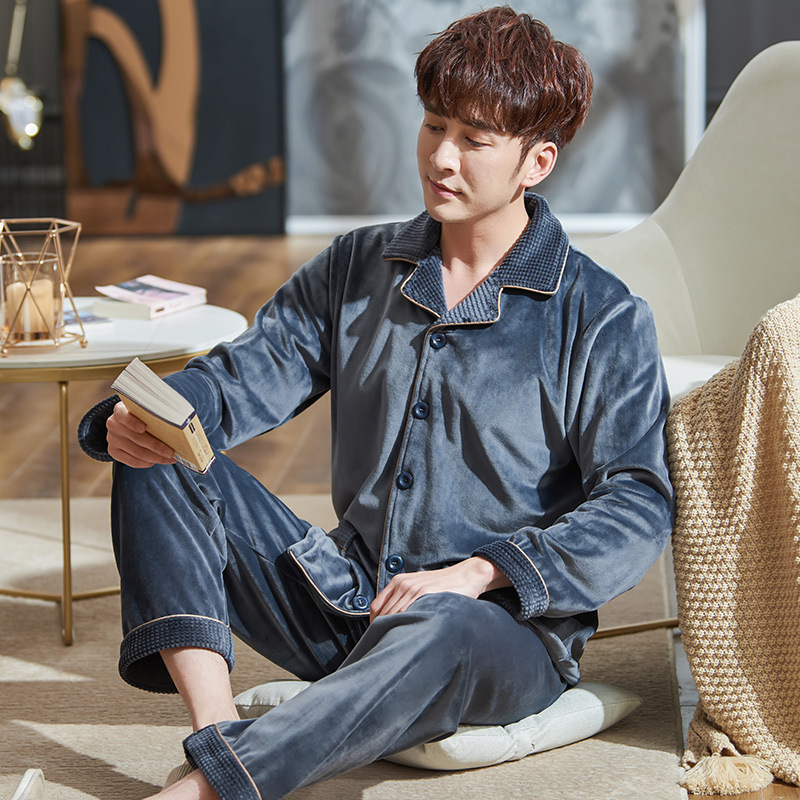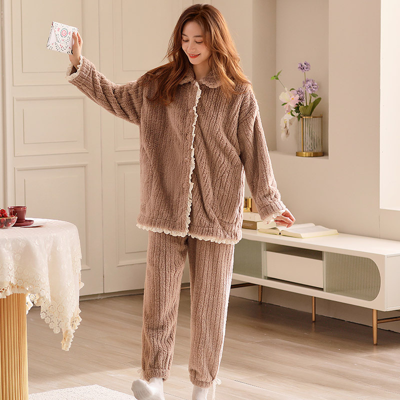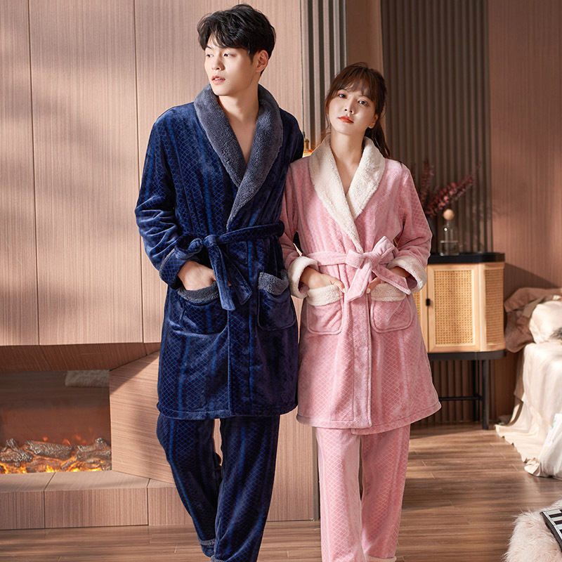 メーカー直売軒の美しい家の服は秋冬にフランネルの襟を厚くしてカーディガンのカップルの服を着てパジャマを二つセットします。