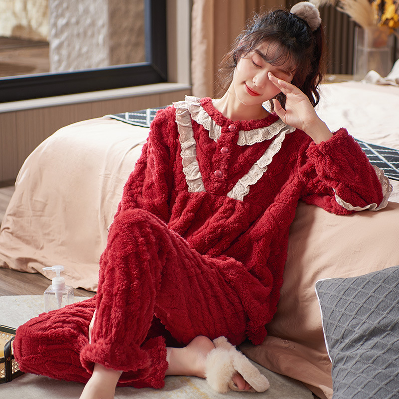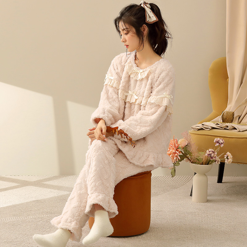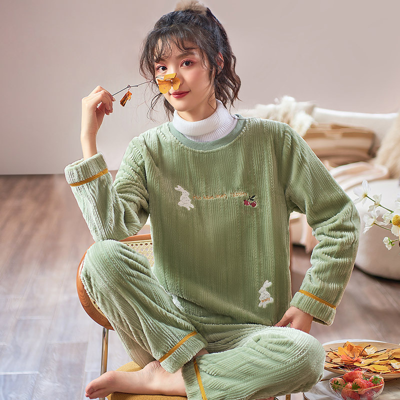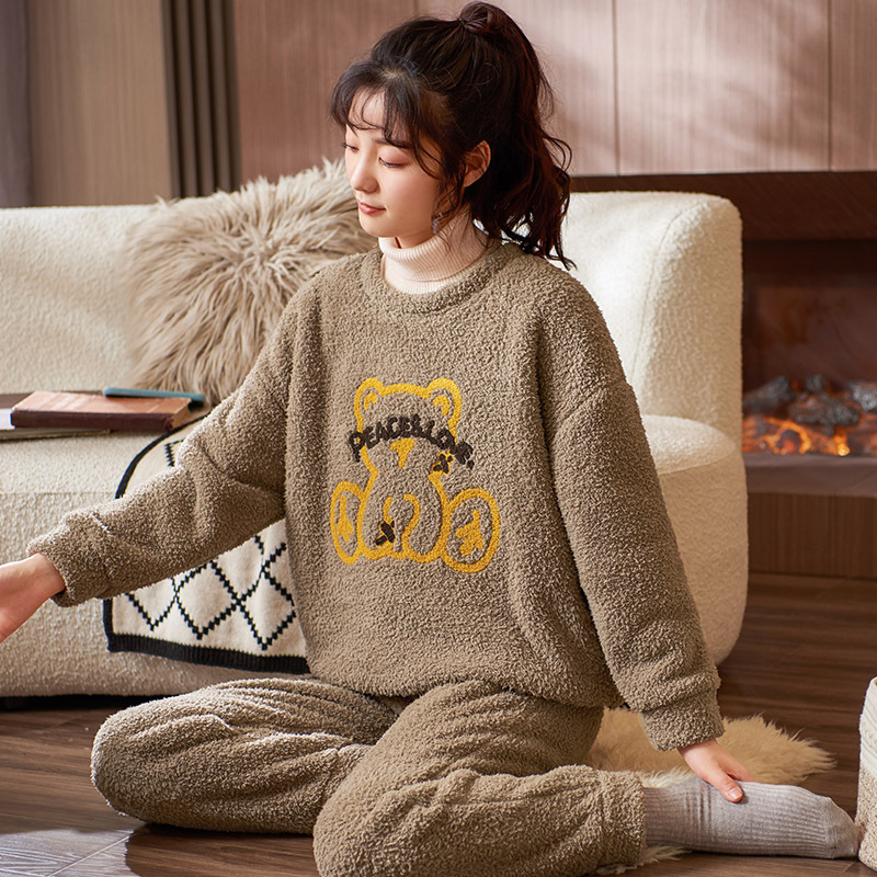 軒の美しいメーカーは秋冬の女性の家の服を直接販売して、ベルベットの丸首の頭を厚くしてパジャマを着ることができます。