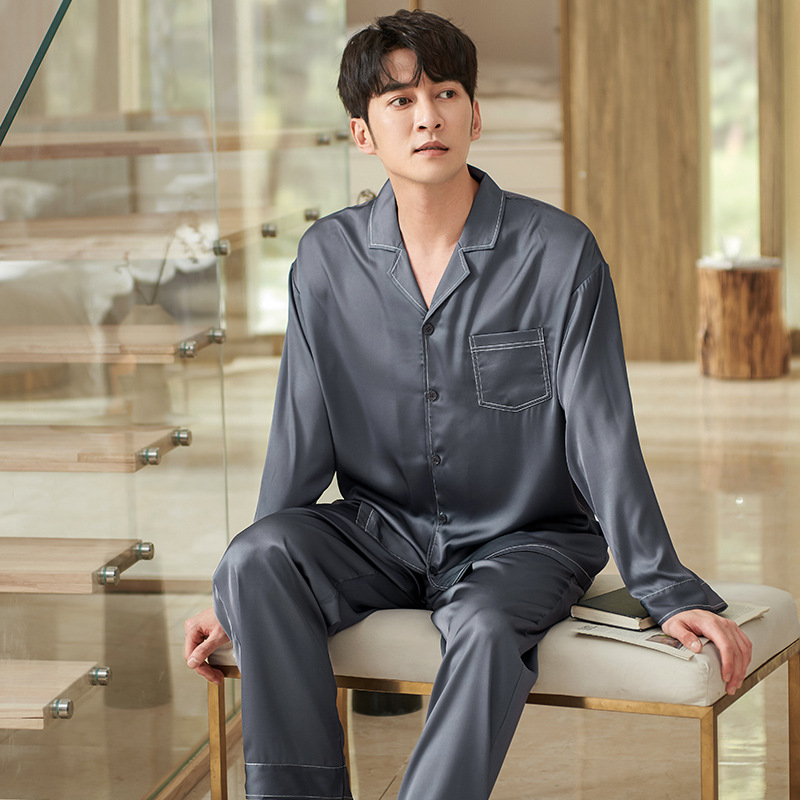 軒の美しいメーカーの直接販売の夏の部屋の服の半袖の7分のズボンの襟のカーディガンのシルクの現物は代行してパジャマの女性を代行することができます。