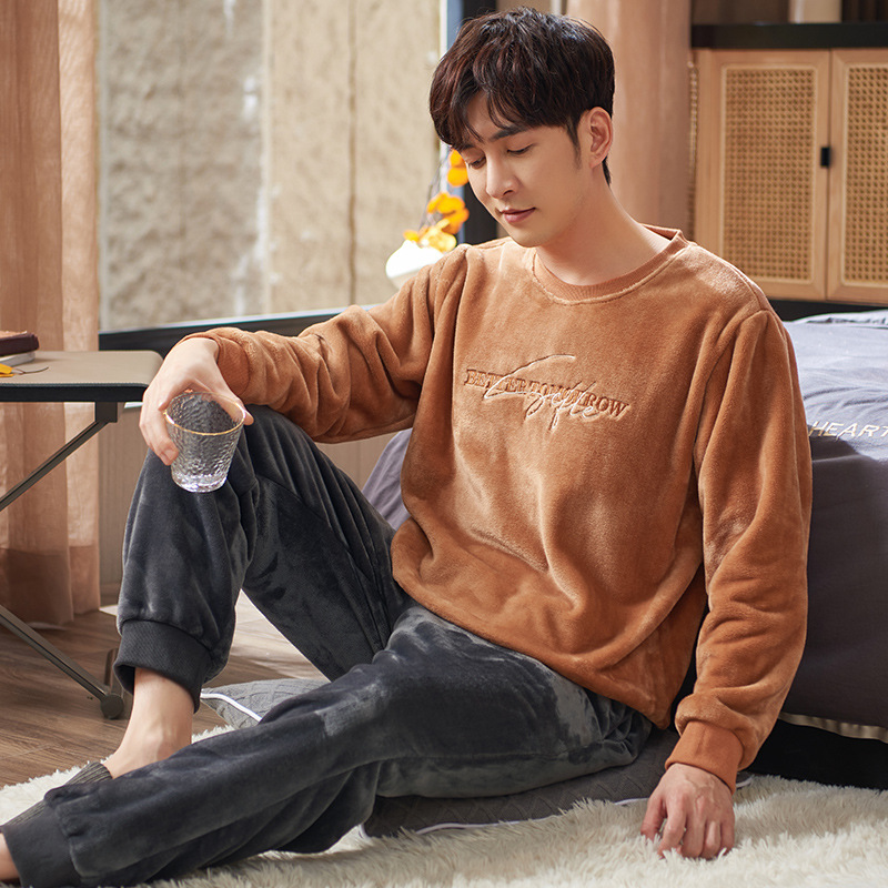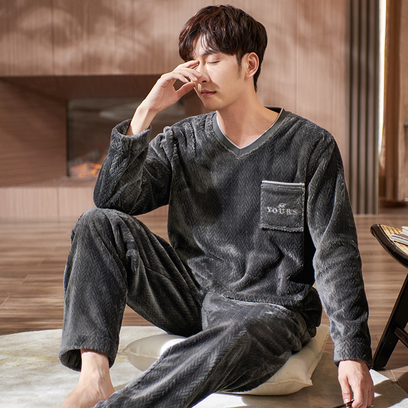 フランネルのパジャマの男性は冬にベルベットを厚くして、サンゴのベルベットを温めて、冬の家庭服の冬のスーツを着ます