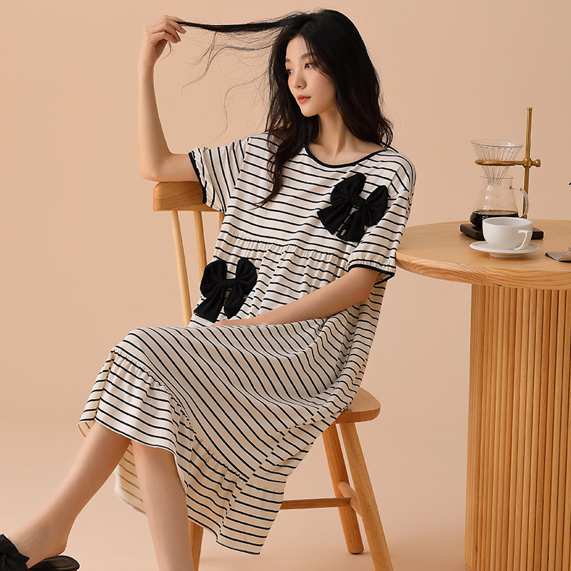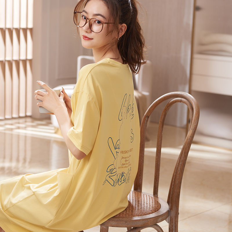 軒の美しいメーカーの直接販売のパジャマの夏の快適なモーダルの半袖の中でスカートの丸首は頭をかぶせて家で寝ます。