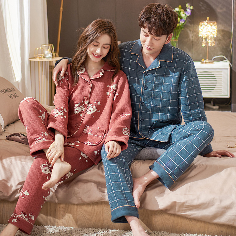 軒の美しいメーカーはカップルの空気綿のパジャマセットと綿の暖かいカップルの大きいサイズの家庭服を提供しています。