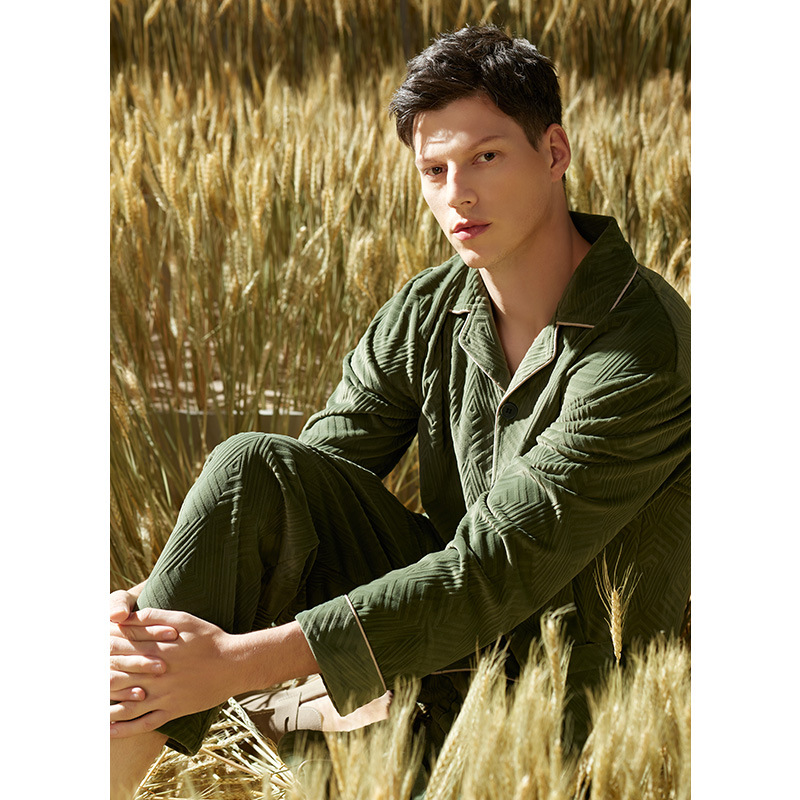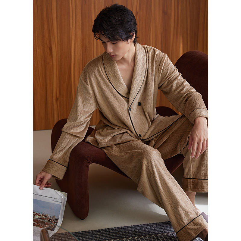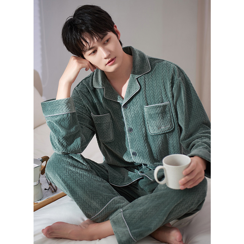 新中国式パジャマ男性秋冬ベルベット海島パイル中国風ホームウェア春秋スーツ