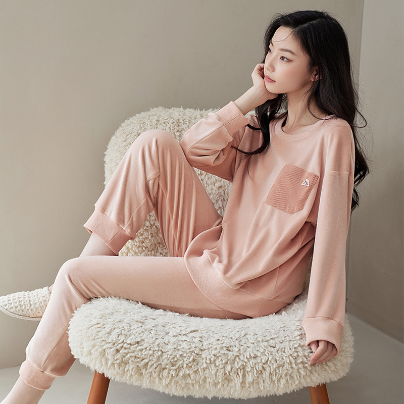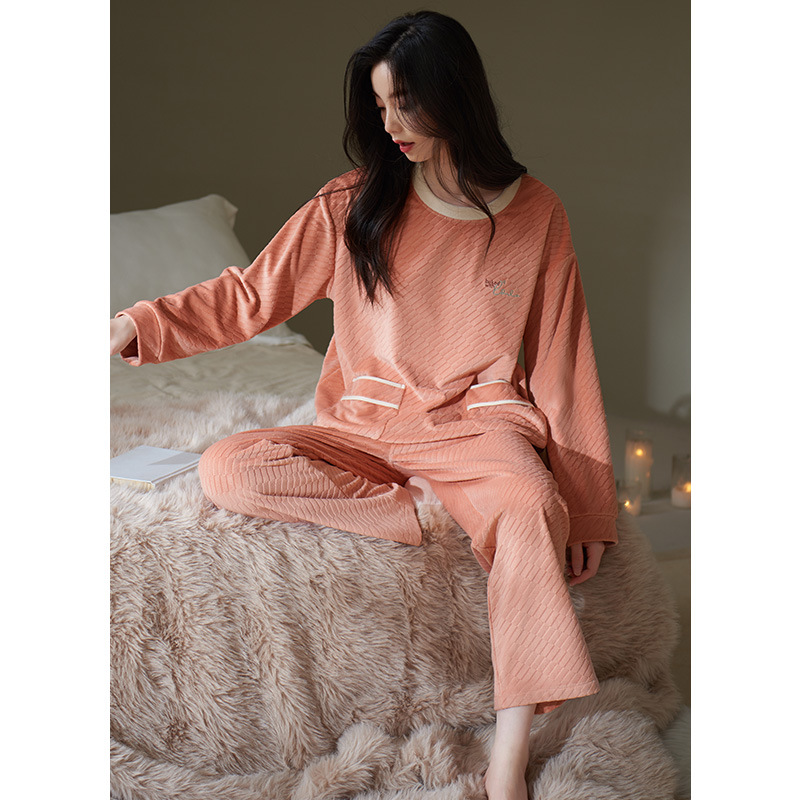 軒の美しい秋の冬の新型の女性の家の服の頭の丸首の簡単なカジュアルなカシミヤの厚い海島の絨毛のパジャマのスーツ