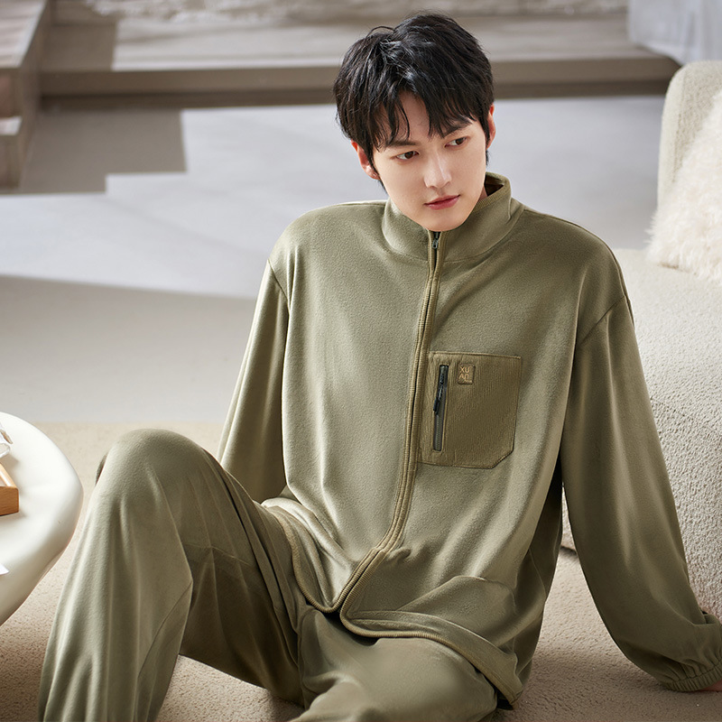 軒の美しい秋冬の男性の家の服の丸首の立襟のファスナーとベルベットの厚い新商品の海島の毛の運動風のパジャマ