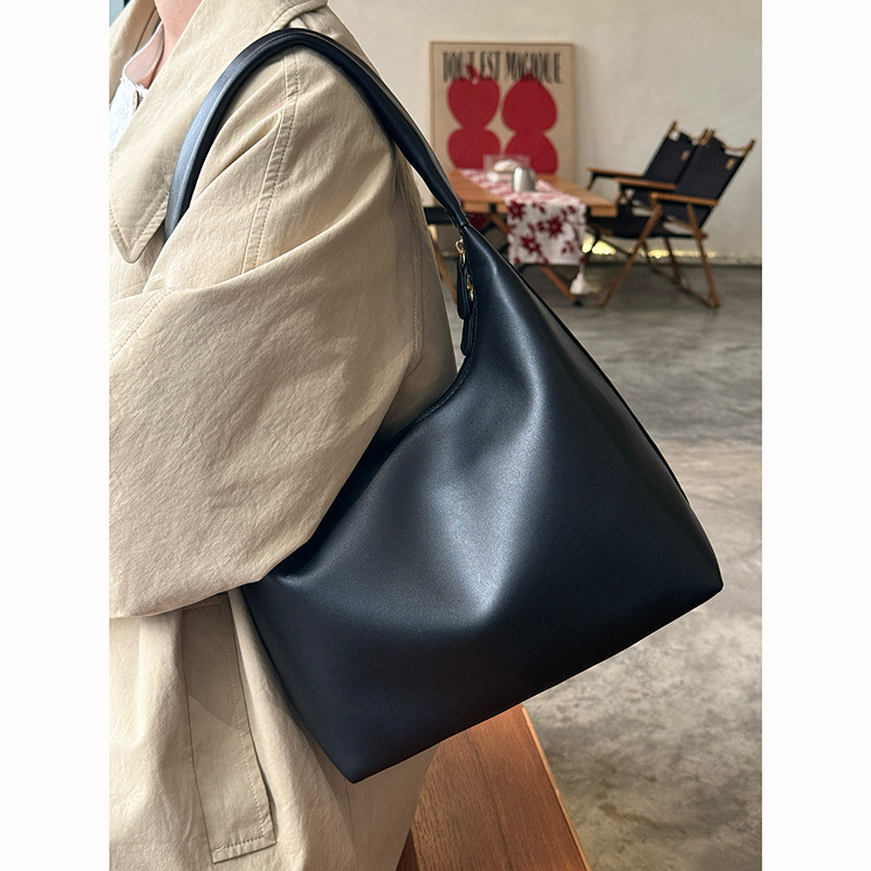 ソフトレザー大容量黒餃子バッグ女性のための 2025 新しいレトロハイエンドカジュアルショルダークロスボディトートバッグ