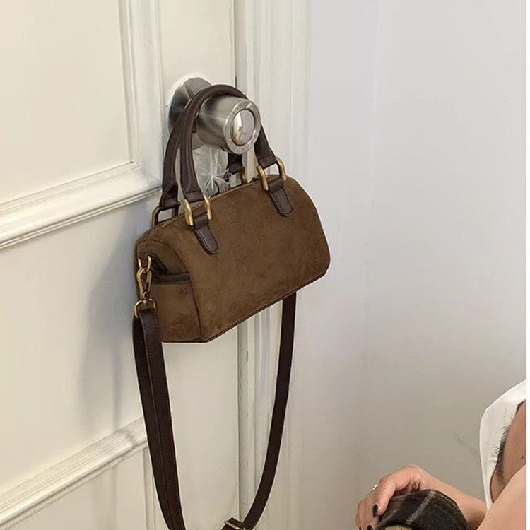 女性のためのバッグ 2025 新しいレトロスエード多用途シングルショルダークロスボディバッグ円筒形枕バッグボストンハンドバッグ