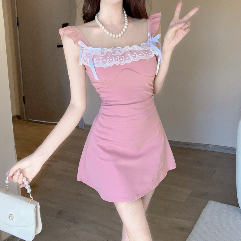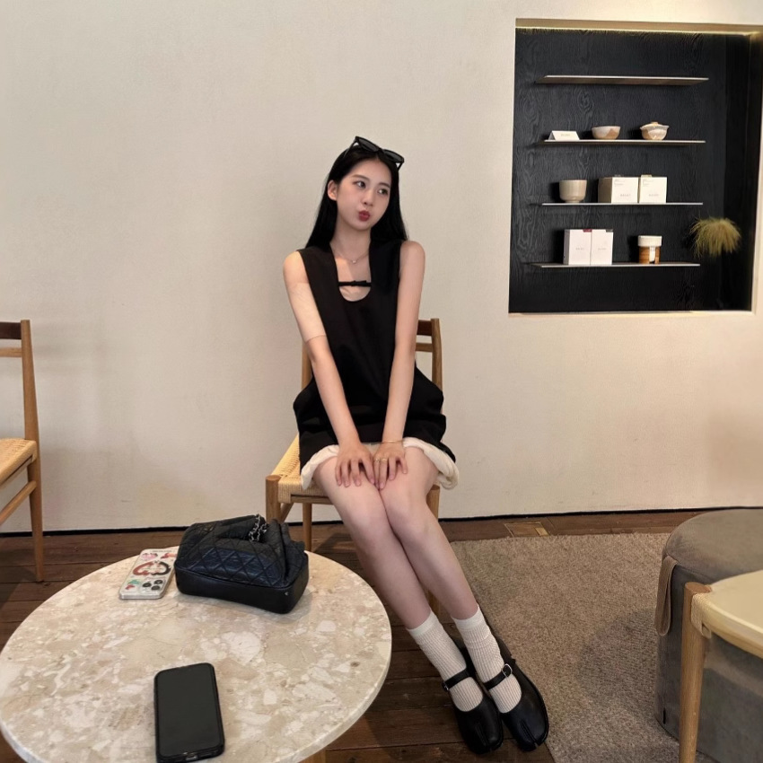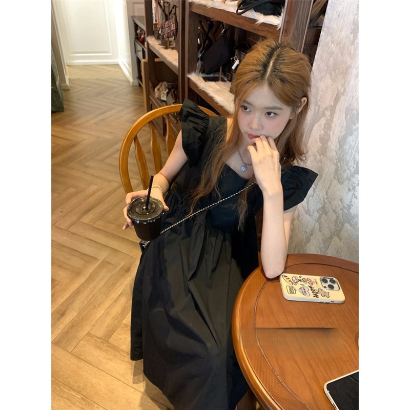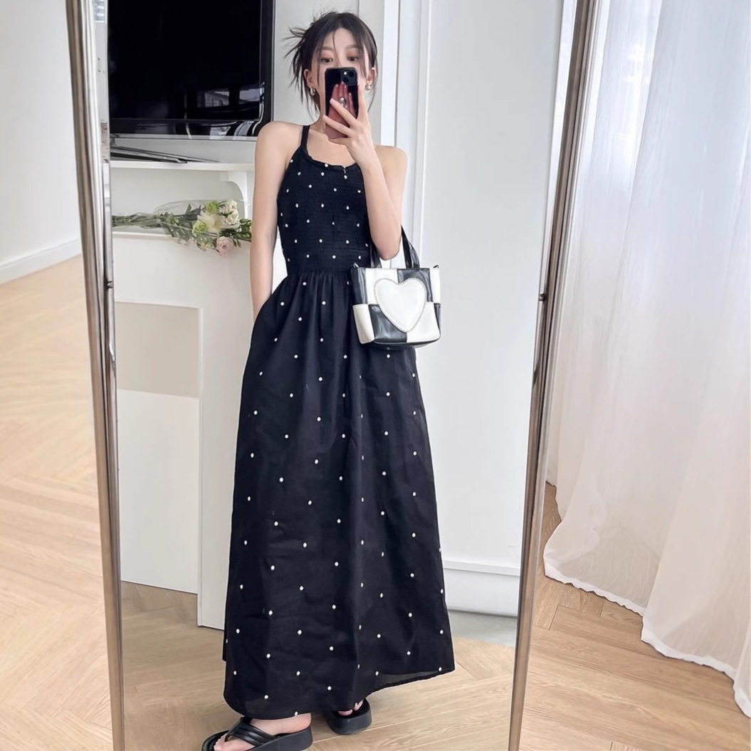 夏2025ウエスト新商品小柄気質ショートスカート高級感ヘボン超仙小黒ストラップワンピース