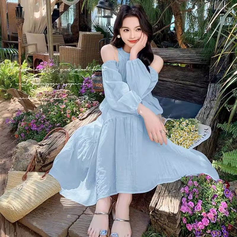 海辺のリゾートワンピース女性夏2025新型甘くて優しい風フランス風気質の美しい肩のビーチスカート