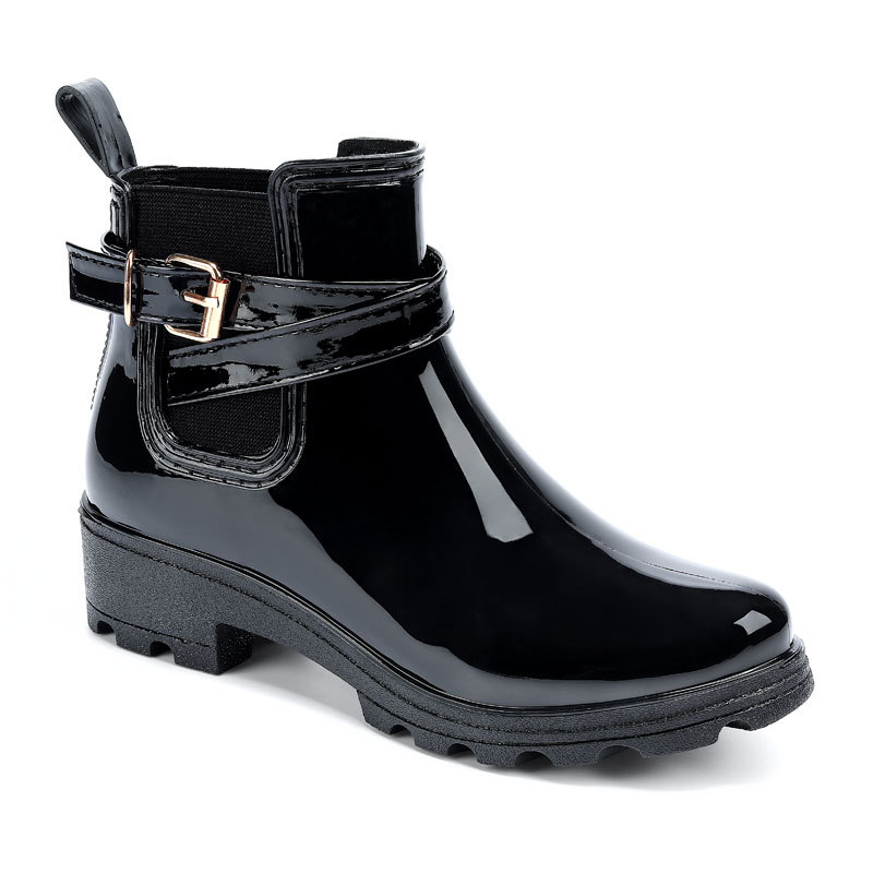 25 新しいレインブーツ新しいショートチューブ光沢のある PVC ウォーターシューズ女性の U 字型大人のレインブーツ弾性マーティンラバーシューズ