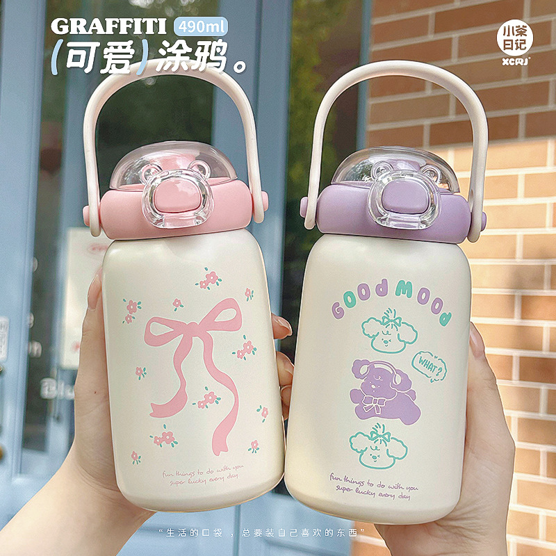 小茶日记不锈钢保温杯带吸管水杯学生随手杯女生网红高颜值便携壶