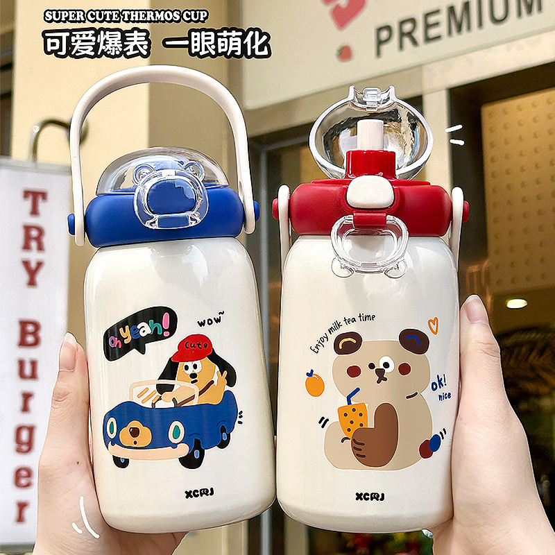 子供大容量ストロー保温カップ学生男性保冷カップ女子かわいい携帯水筒大腹カップ冬