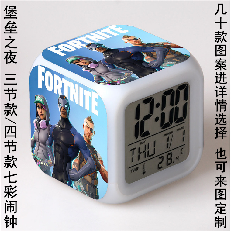 アマゾン対外貿易ソースゲーム周辺の砦の夜目覚まし時計七彩変色led目覚まし時計四方時計プレゼント1