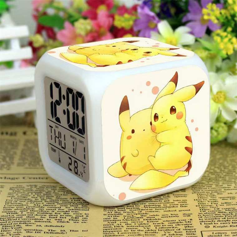 アマゾンの外国貿易の商品の供給源の漫画のピカチュウの精霊宝の夢の目覚まし時計の七色の変色の目覚まし時計の贈り物