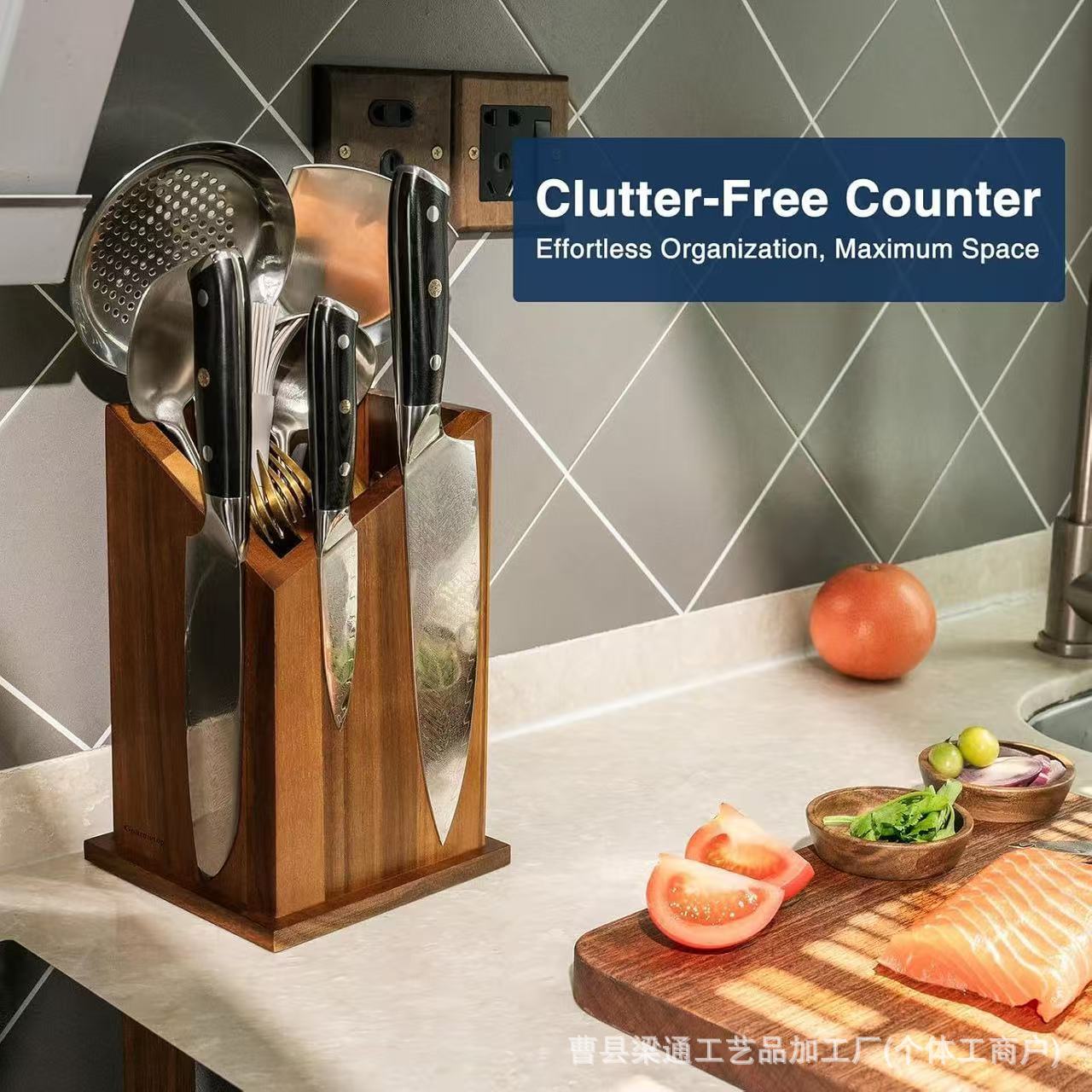 アカシア材磁気キッチンデスクトップナイフラック食器収納ラック分割形式大容量無垢材ナイフラック