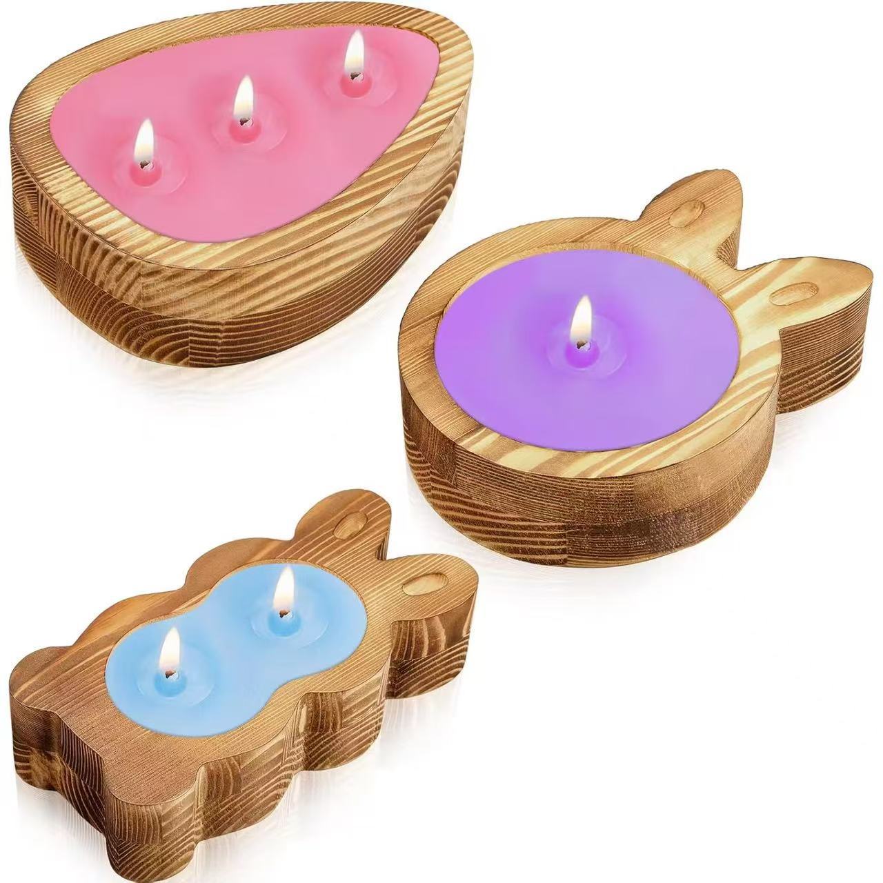 クロスボーダー無垢材アロマテラピー装飾品イースターキャンドルホルダー漫画ウサギの形の木製アロマテラピーキャンドルホルダー装飾品