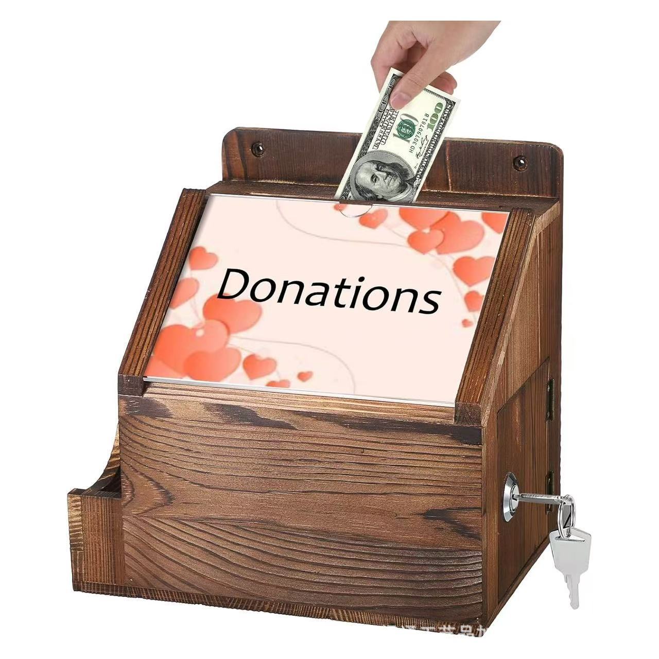 レトロな無垢材のロック付きリビングルーム壁掛け子供用貯金箱屋内メールボックス慈善募金提案ボックス
