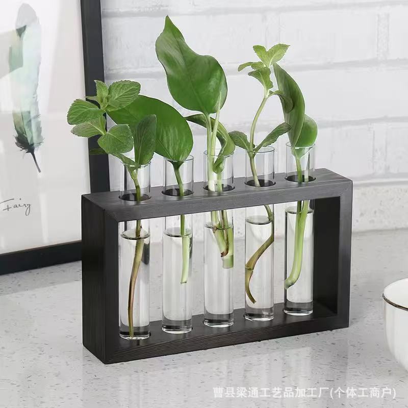 クリエイティブな木製水耕花瓶、緑の植物フラワーアレンジメントコンテナ、分割ガラス花瓶装飾品、カウンタートップ装飾工芸品
