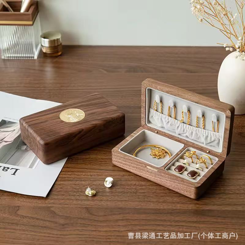 ライト高級ブラックウォールナットジュエリー収納ボックス二層大容量リングネックレスイヤリングウェディングゴールドジュエリー収納ボックス