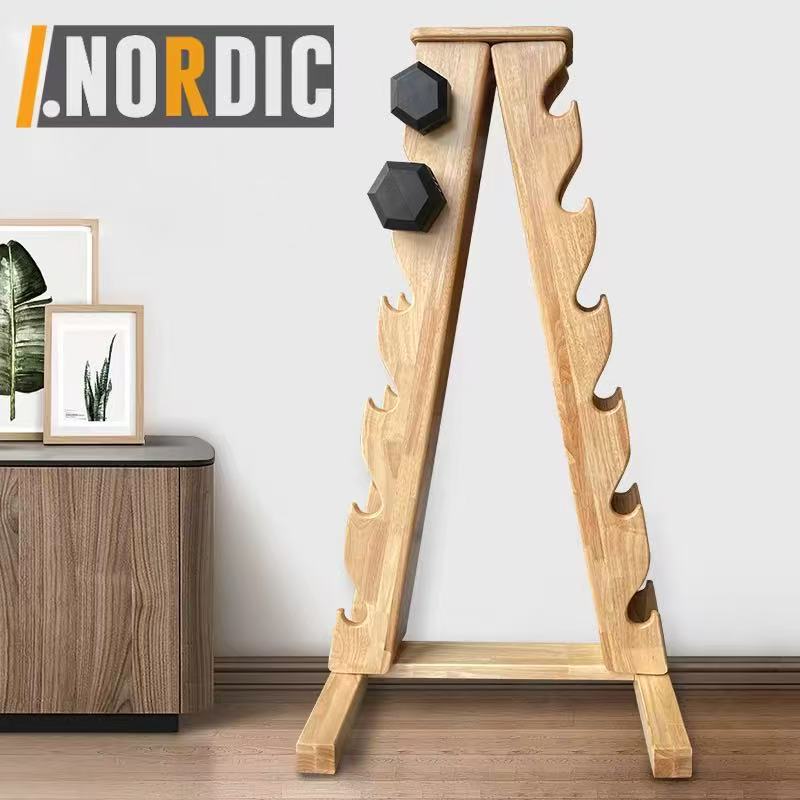 モダンでシンプルな木製三角スタンド多層床置きスタンドホームフィットネスタイプA 12本無垢材ダンベルスタンド