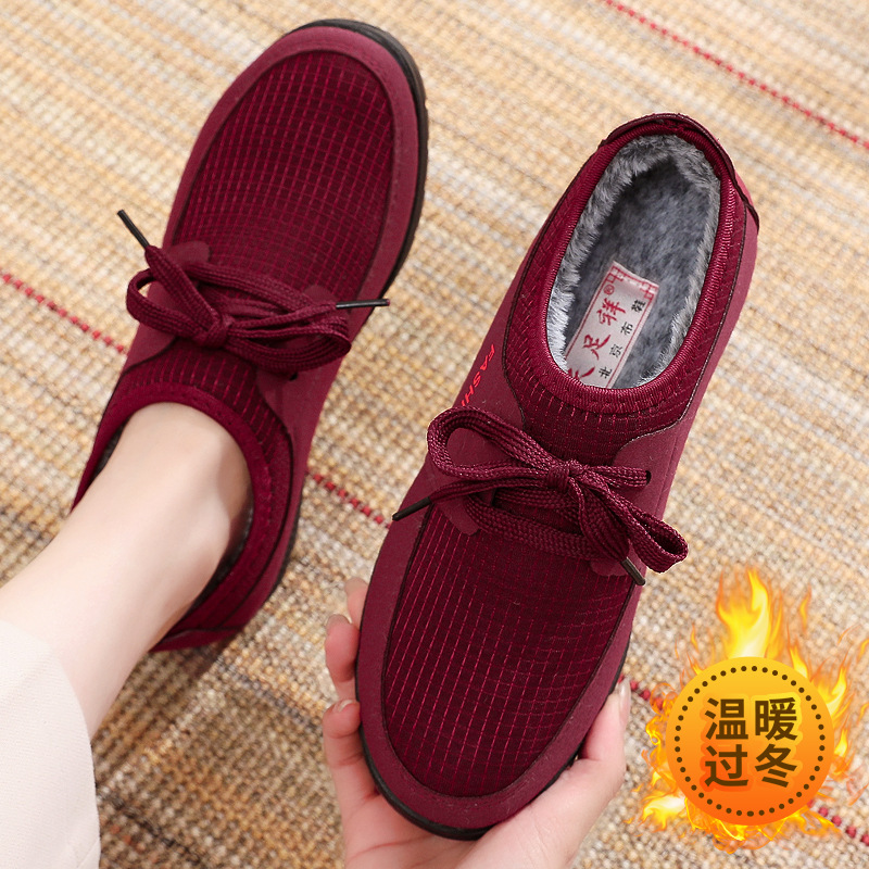 中高年のベルベットと厚い綿靴のひも2023冬の新しい古い北京布靴の婦人綿靴老人保温靴