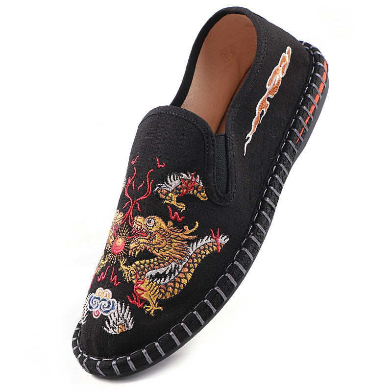 龍トーテム2024新型北京布靴男性靴伝統刺繍通気性男性靴快適カジュアル布靴