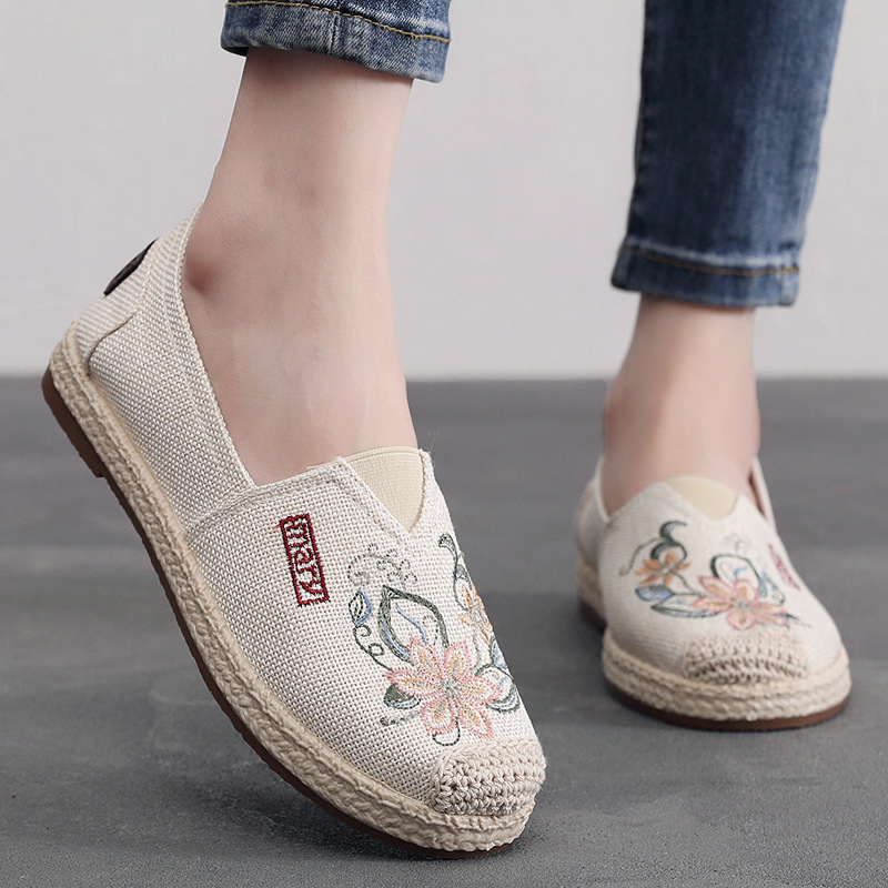 春と秋のキャンバスの靴の新型の古い北京の布の靴の女性の通気性の怠け者の足はカジュアルな女性の靴の柔らかい底のお母さんの靴のバッチを踏んでいます。
