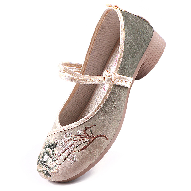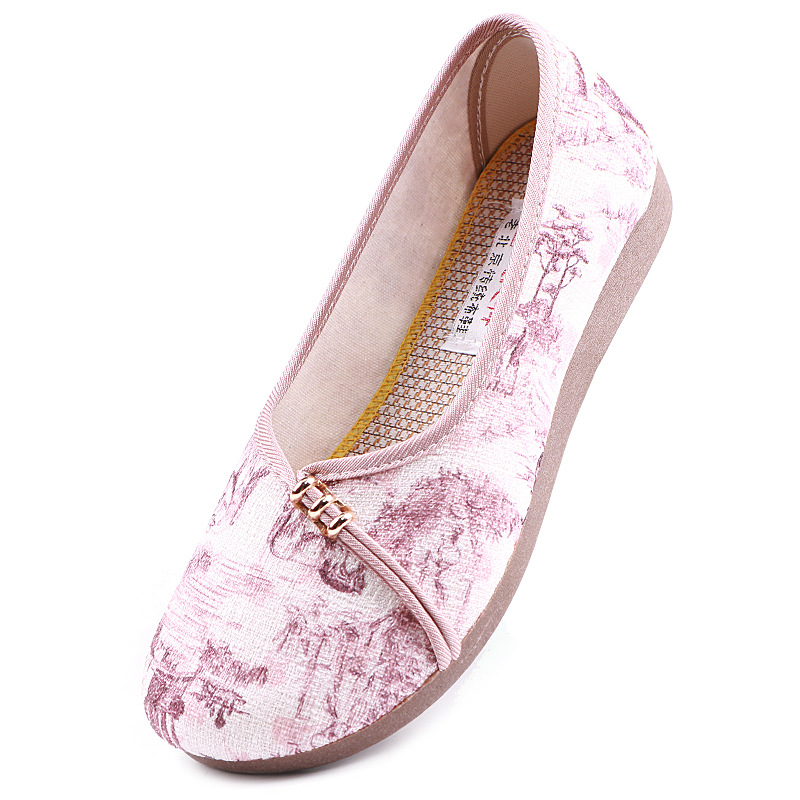 中国風の柔らかい底の女性の靴の平と2024秋の新型の古い北京の布の靴の女性の靴の浅い口の通気性のお母さんの靴