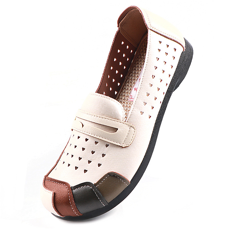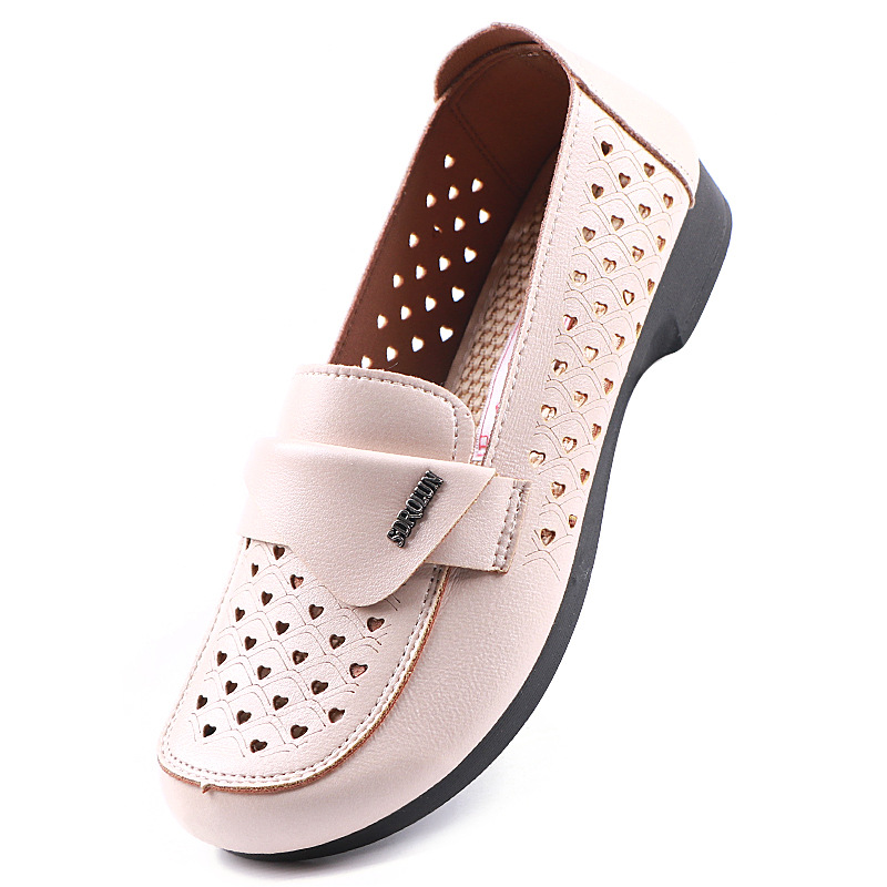 楽福靴の女性は穴を開けて2024夏の新型のファッションのカジュアルな女性のネットの靴のお母さんの靴の透かし彫りの通気性の女性の靴の柔らかい底