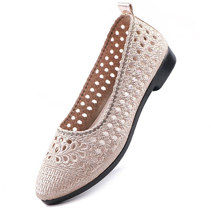 ファッションカジュアルな口の穴を開けて豆の靴の女性の靴の夏の新型の古い北京の布の靴の女性のネットの靴は透かして通気性が柔らかいです。