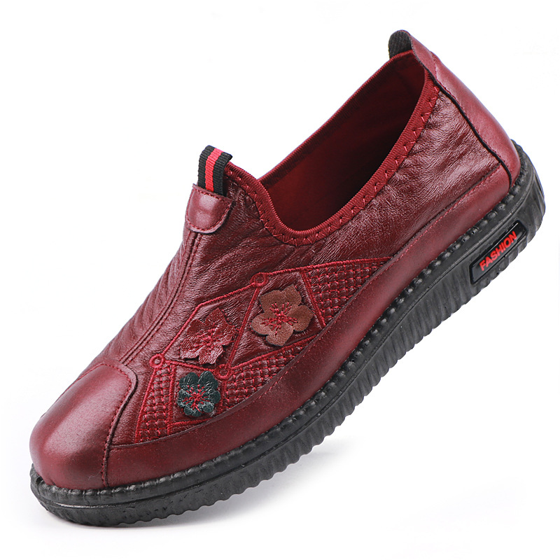 春秋の新型の老人の靴の女性は足を踏んで靴の柔らかい底の中で老年のレジャーのお母さんの靴の平の靴の卸売りをします。